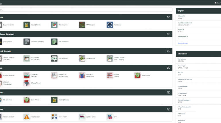 Tamamen ekibimiz tarafından hazırlanan cpanel/whm anımsatan directadmin kullanımını kolaylaştıracak cpanel tasarımını tamamlamak üzereyiz. Tüm özkula müşterilerine ücretsiz sunulacak olan tasarım aynı zamanda tüm hosting sektörüne kullanılmasın için ücretsiz sunacaktır. Tasarım tahmini 1 hafta içersin de yayınlanacaktır. Directadmin için hazırlanmış cpanel tasarımından görüntüler